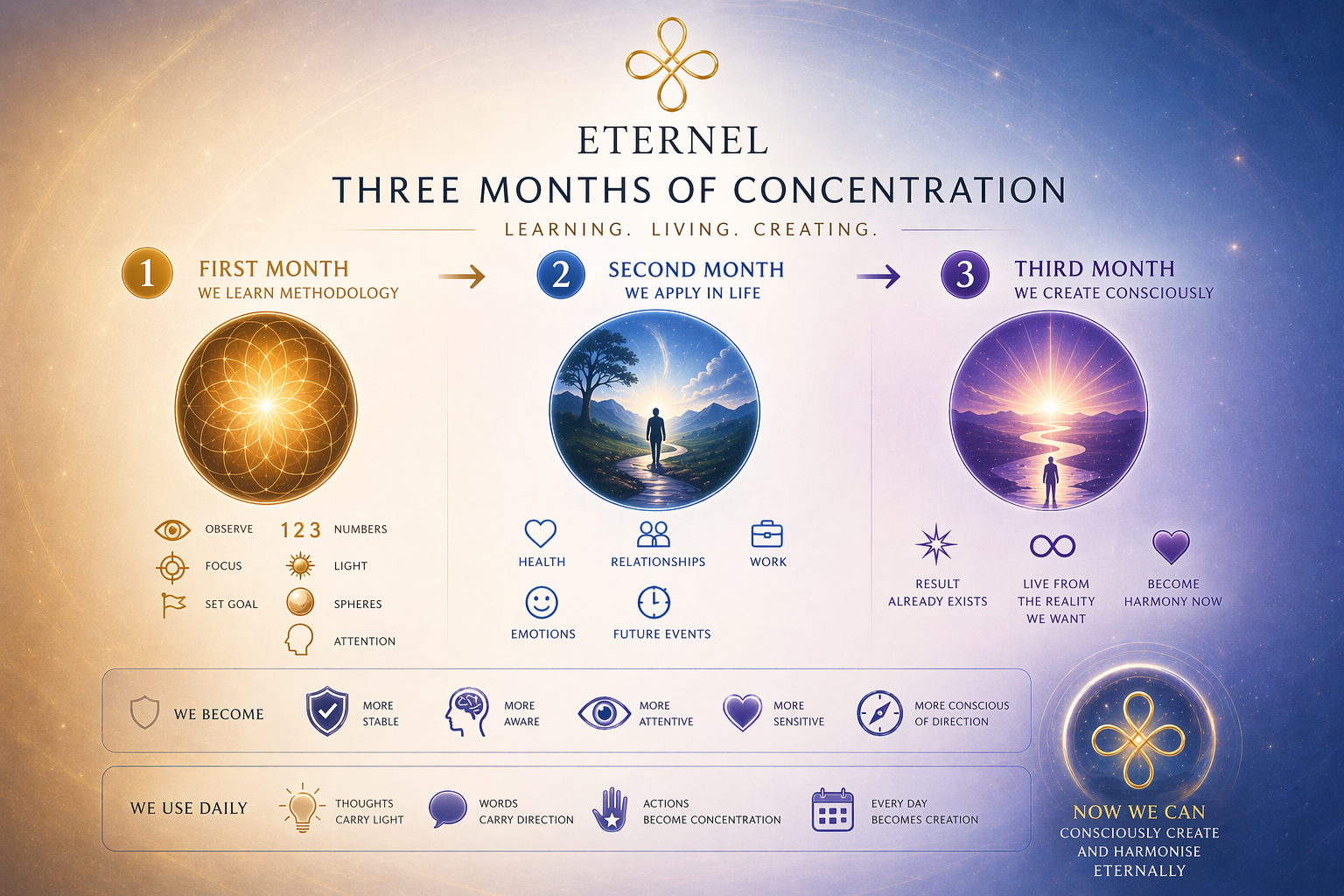 In this new phase, we explore how concentration naturally supports daily life in personal decisions, relationships, creative projects, and future orientation.